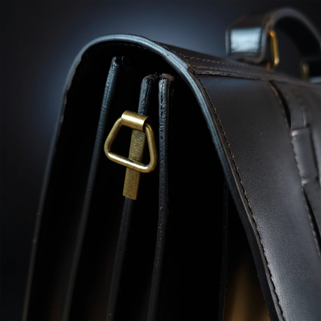 Diseñado con un estilo clásico de inspiración vintage, este espacioso maletín está elaborado con cuero genuino de alta calidad en un negro profundo y atemporal. Ofrece una funcionalidad y seguridad excepcionales, siendo el compañero ideal para negocios, oficina o universidad.